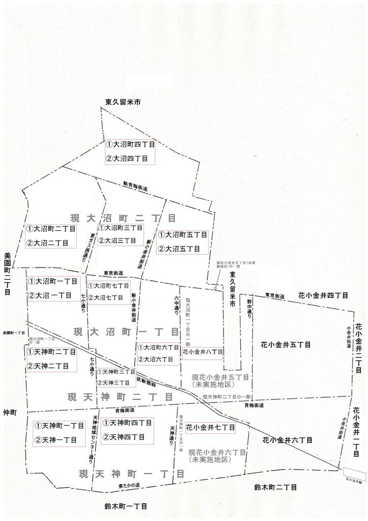 [2]六中通りより東側の大沼町1丁目及び西武新宿線より東側の天神町2丁目、