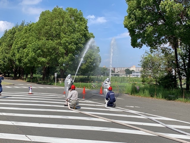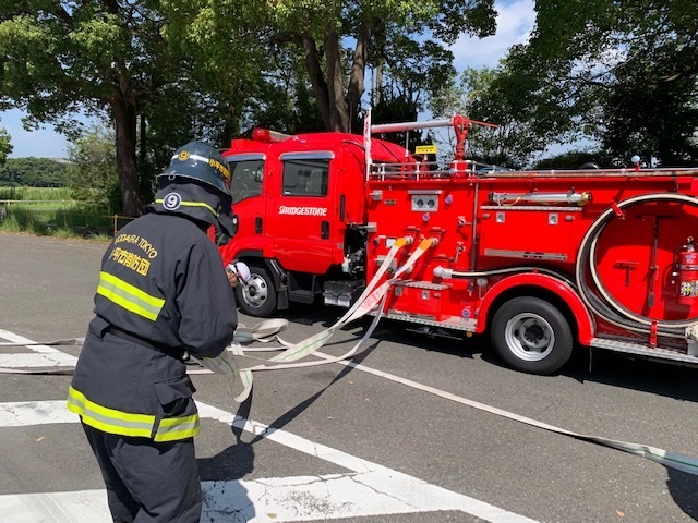 令和元年9月6日(金曜)、株式会社ブリヂストン技術センター/東京ACタイヤ製造所にて、小平市消防団、小平消防署、株式会社ブリヂストン自衛消防隊の3者が遠距離送水訓練を実施しました。