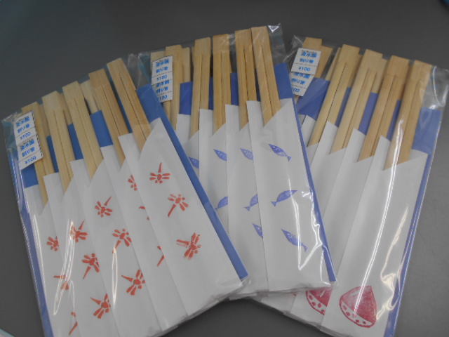 毎回人気のかわいい割箸袋。陶芸作品にも注目。
