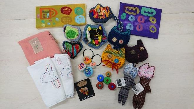 米ぬかせっけん、スポンジ、手作りマスクやふきん等の縫製品、パウンドケーキ、クッキー、ブルーベリージャム等