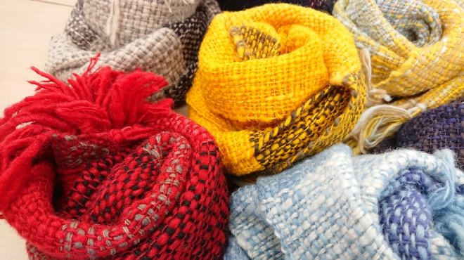 一つ一つ違う、手染め手織り商品です。ちょっとアートな小物もあれこれ作っています。